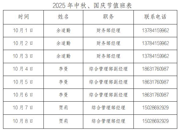 根据上级通知,现将2025年中秋、国庆节放假安排通知如下: